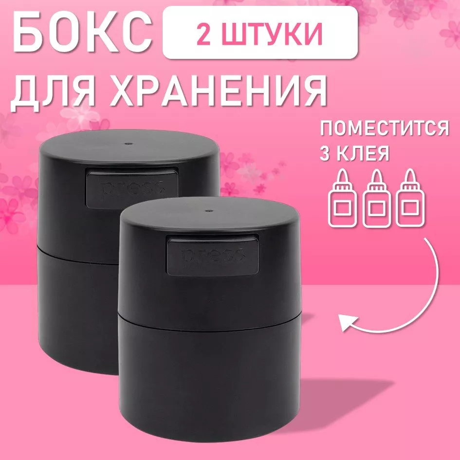 Элегантный черный цвет придает боксу стильный и профессиональный вид, который гармонично впишется в любое рабочее пространство. Благодаря компактным размерам контейнер легко размещается на туалетном столике или в косметичке, что делает его идеальным решением для хранения не только клеевых составов, но и других косметических средств.