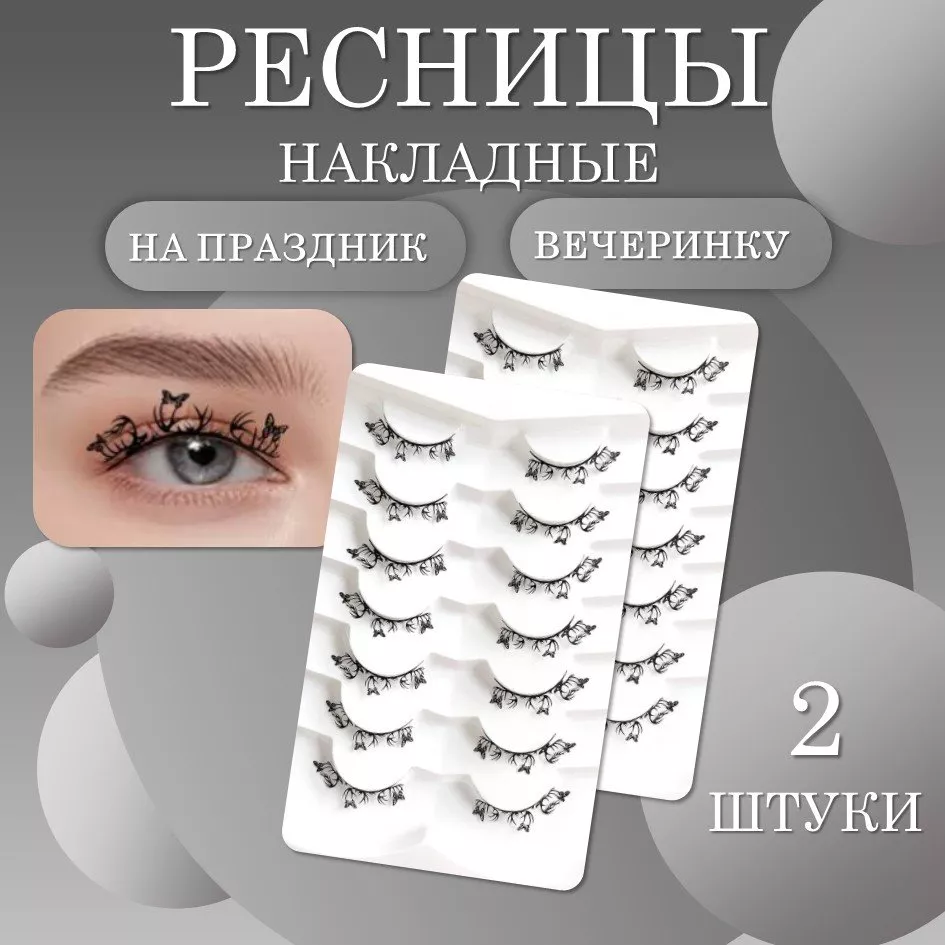 Ресницы накладные черные на праздник, вечеринку тени бабочек 2 шт