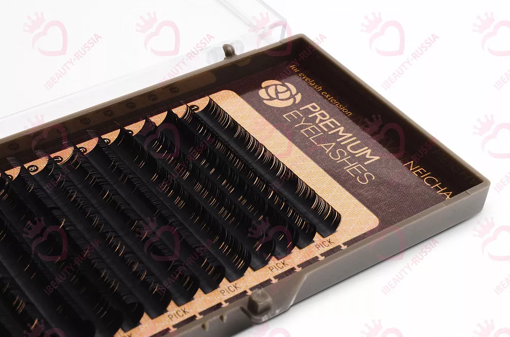 Ресницы для наращивания Neicha Premium – черные матовые ресницы классической формы из гипоаллергенного моноволокна.