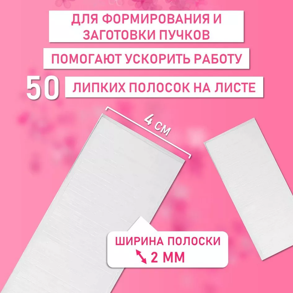 Профессиональный набор включает 20 листов двусторонней клейкой ленты для формирования пучков ресниц. Комплект рассчитан на длительное использование и подходит для интенсивной работы мастера.