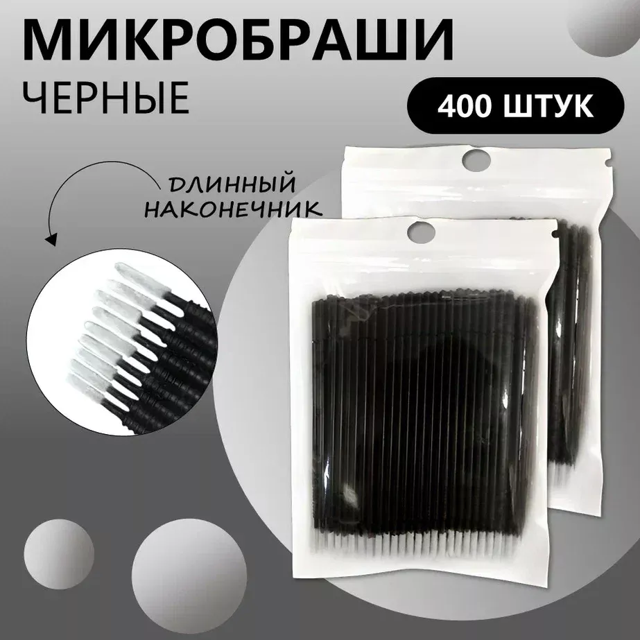 Профессиональные микробраши черного цвета с удлиненным наконечником в экономичной упаковке для салонного использования. Идеальное решение для мастеров по работе с бровями и ресницами.