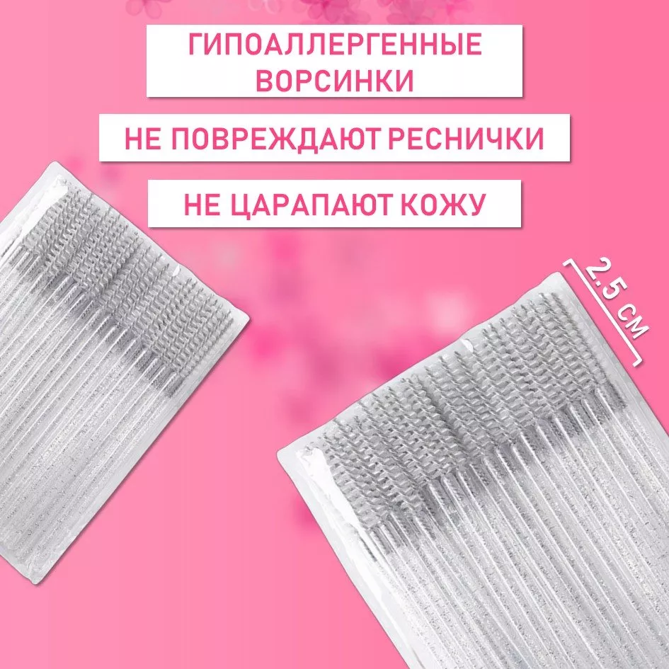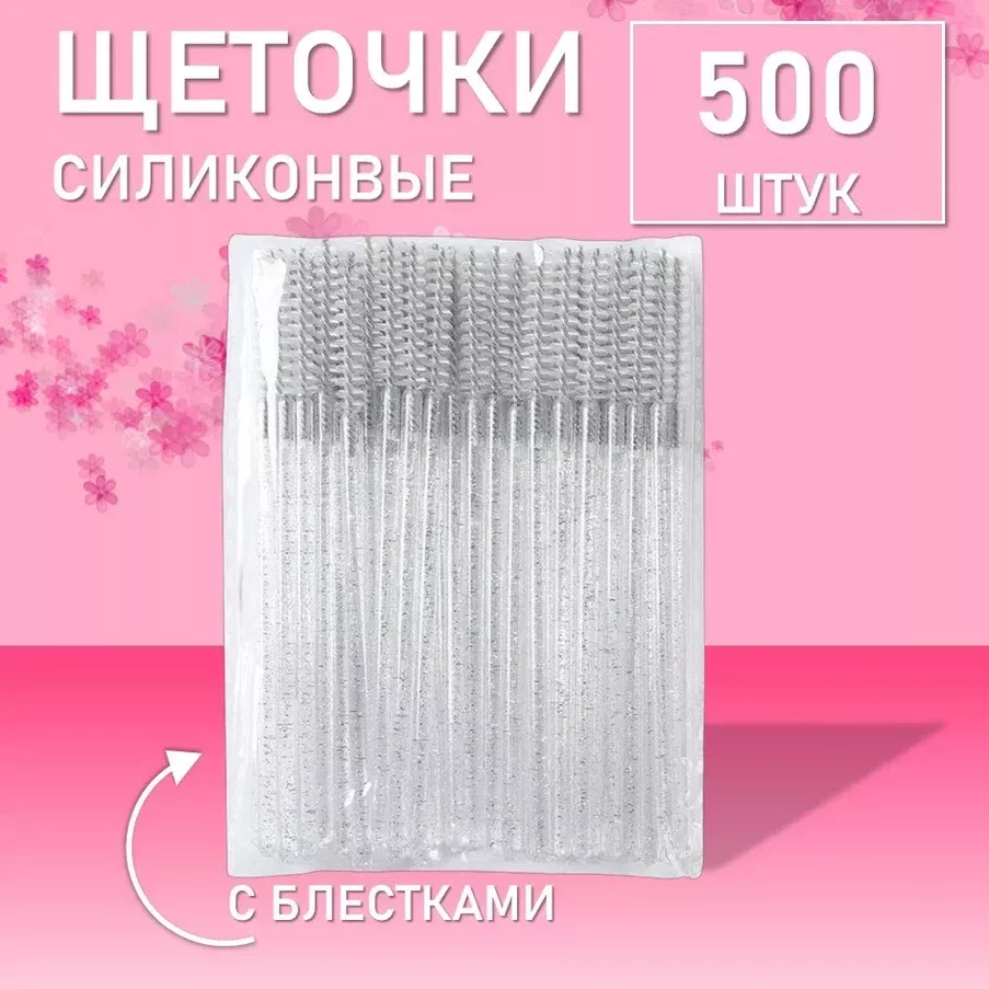 Ворсовые щеточки для ресниц с блёстками белые (500 шт)