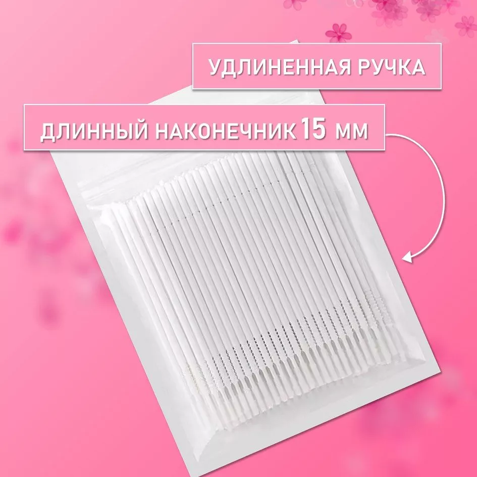 Микробраши белые с длинным наконечником (1 см) — одноразовые аппликаторы для профессионального ухода за ресницами, бровями и ногтями. Благодаря удлинённой форме (длиннее ватных палочек) и мягкой щетине на конце идеально подходят для ламинирования ресниц и бровей, биозавивки, нанесения полуперманентной туши, окрашивания краской или хной, наращивания ресниц, обработки ногтевой пластины. Не теряют ворсинки, изготовлены из гипоаллергенного материала, эффективно абсорбируют и отдают жидкость при нанесении. Удобны для быстрой выкладки ресниц на валик при ламинировании и ускоряют процесс снятия ресниц при наращивании. Компактны, гигиеничны, незаменимы в работе мастера маникюра или бровиста.