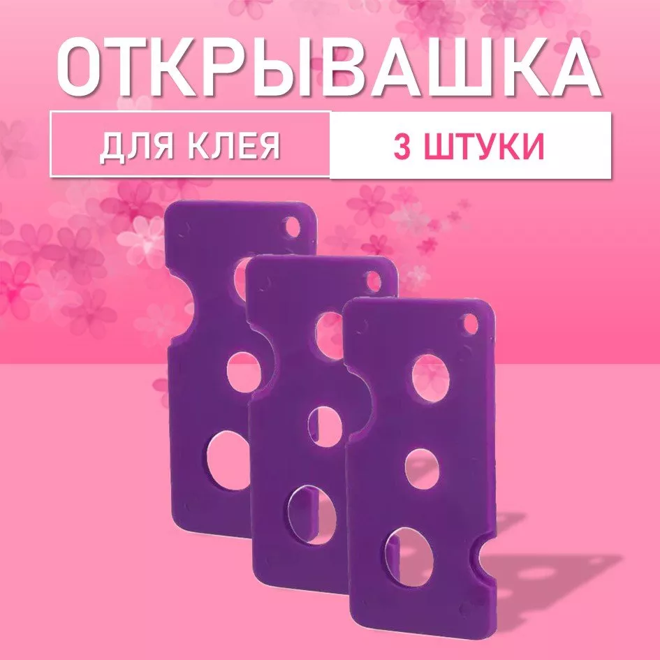 Открывашка для клея фиолетового цвета — практичный инструмент для мастеров по наращиванию ресниц. Оснащена пятью отверстиями разного диаметра, благодаря чему подходит для флаконов и бутылочек с клеем различных размеров. Обеспечивает безопасное и лёгкое снятие крышек и замену носиков без лишних усилий, исключая риск повреждения флакона. Для удобства и предотвращения потери предусмотрена цепочка — её можно надеть на палец во время работы. Помогает существенно упростить рабочий процесс, сэкономить время и поддерживать порядок на рабочем месте.
