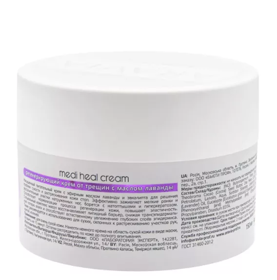 Насыщенный питательный крем с эфирным маслом лаванды и эвкалипта для решения проблем сухости и растрескивания кожи стоп. Эффективно заживляет мелкие ранки и воспалительные участки натруженных ног, борется с натоптышами и гиперкератозом. Способствует нормализации процесса регенерации кожи, повышает эластичность. Специальный комплекс масел восстанавливает липидный барьер, снижая трансэпидермальную потерю влаги и способствует естественному увлажнению глубоких слоёв эпидермиса. Также рекомендуется к использованию для сухих, склонных к растрескиванию участков рук, локтей, коленей.