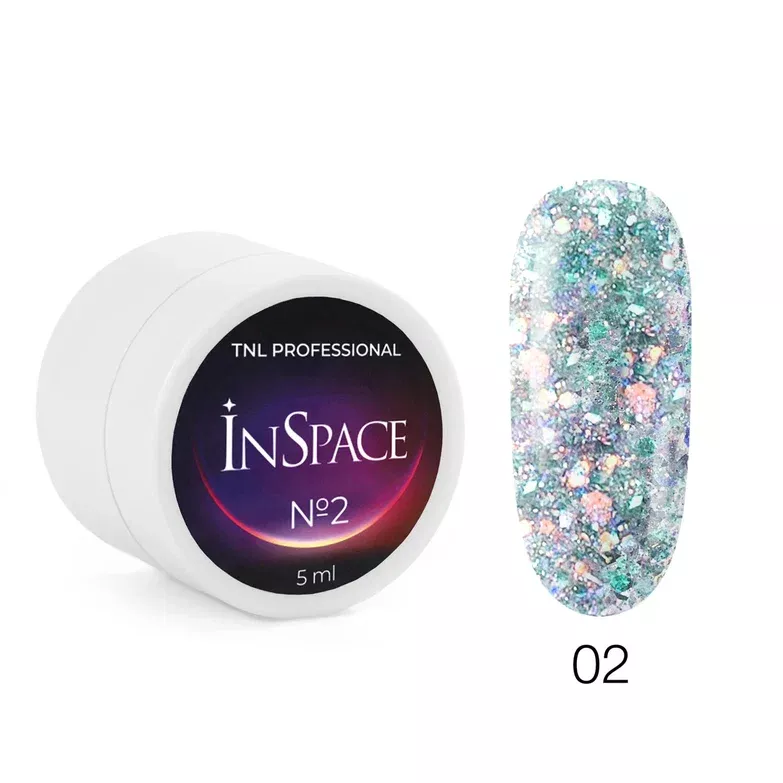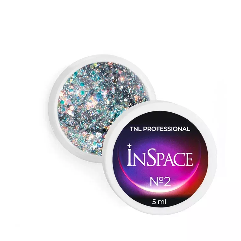 Коллекция InSpace состоит из шести невероятных футуристических оттенков. Каждый оттенок — эффектное сочетание светоотражающих блесток и цветных голографических шестигранников с жемчужными переливами. Гель имеет комфортную для работы среднюю консистенцию. Обладает эффектом самовыравнивания. Не требует использования базы.