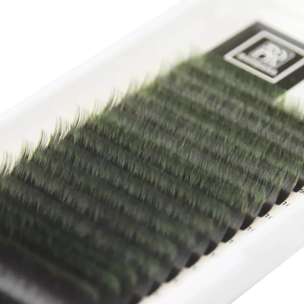 Цветные ресницы омбре зеленого цвета используются для профессионального наращивания ресниц. 16 линий в палетке.