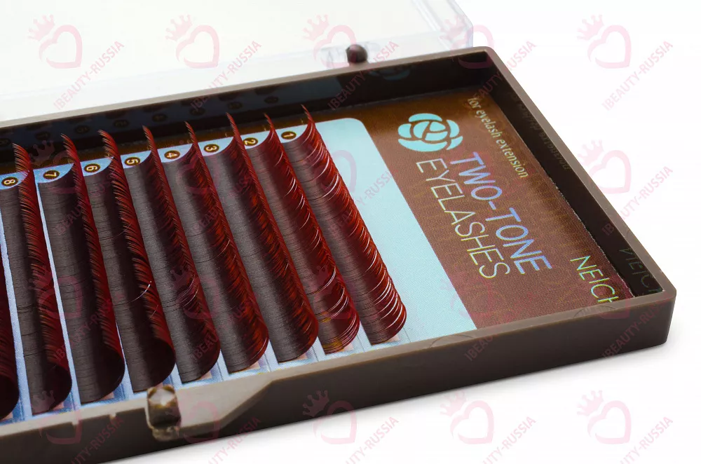 Ресницы с цветными кончиками изготовлены из гипоаллергенного моноволокна классической формы.