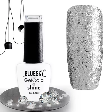 Палитра BlueSky "SHINE" представлена 18-ю великолепными мерцающими цветами с шиммером и блестками.