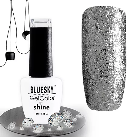 Палитра BlueSky "SHINE" представлена 18-ю великолепными мерцающими цветами с шиммером и блестками.