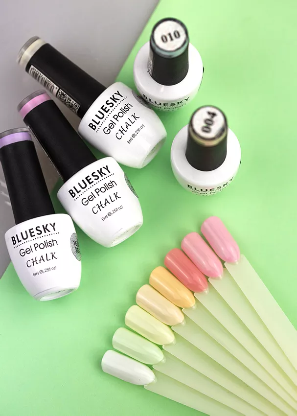 Chalk - одна из полюбившихся линеек ТМ BlueSky. Весенне-летняя коллекция гель лаков светлых пастельных оттенков подойдет для любого тона кожи. Оттенки данной серии можно использовать как самостоятельно, так и комбинировать их между собой. Консистенция - средне-густая