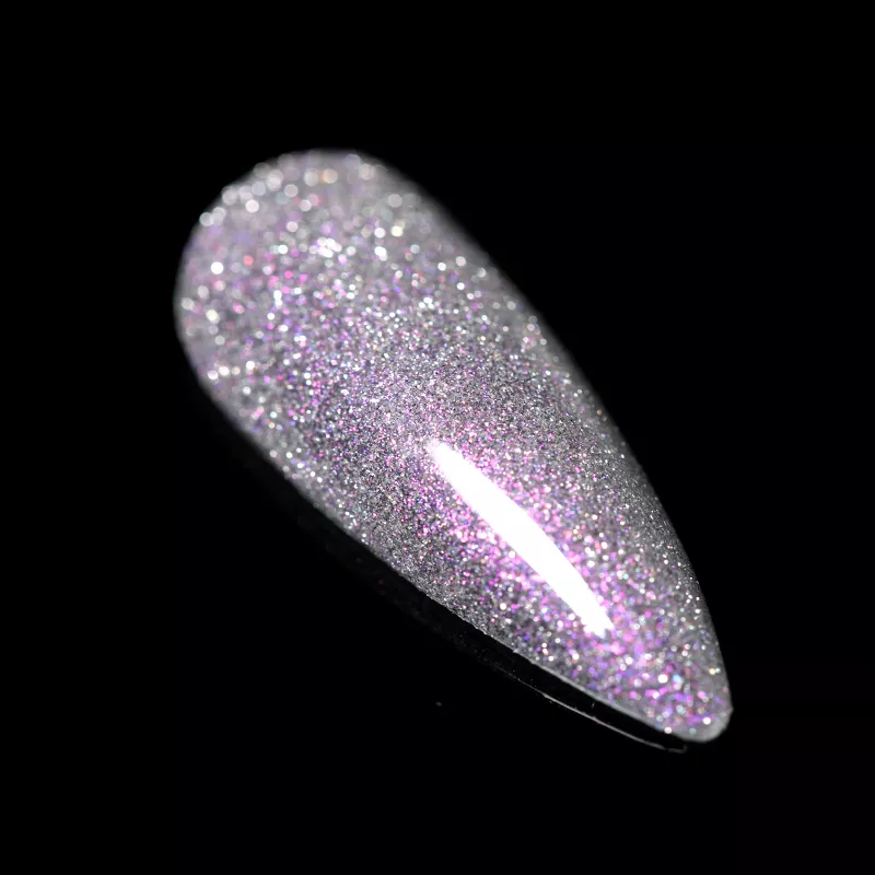 Оттенок: светоотражающий с серебряными, розово-фиолетовыми и голографическими блестками с эффектом Aurora, полупрозрачный