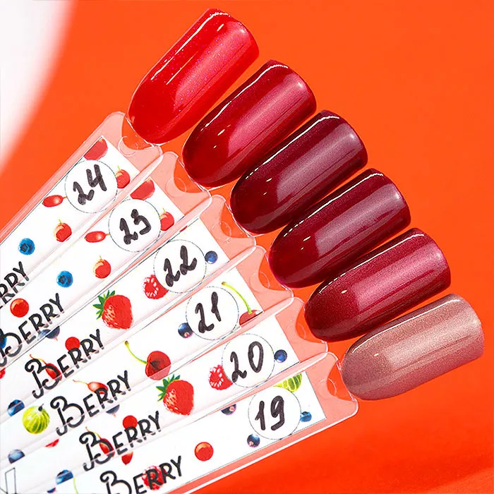 В палитру коллекции Berry входят 24 выразительных ягодных оттенка. Покрытия порадуют вас хорошей консистенцией, а стойкость данной линейки приятно удивит.