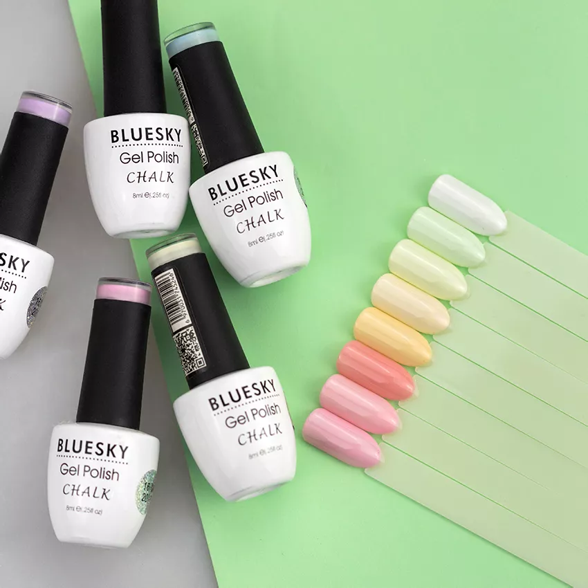 Chalk - одна из полюбившихся линеек ТМ BlueSky. Весенне-летняя коллекция гель лаков светлых пастельных оттенков подойдет для любого тона кожи. Оттенки данной серии можно использовать как самостоятельно, так и комбинировать их между собой. Консистенция - средне-густая