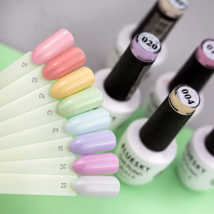Chalk - одна из полюбившихся линеек ТМ BlueSky. Весенне-летняя коллекция гель лаков светлых пастельных оттенков подойдет для любого тона кожи. Оттенки данной серии можно использовать как самостоятельно, так и комбинировать их между собой. Консистенция - средне-густая
