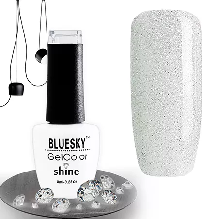 Палитра BlueSky "SHINE" представлена 18-ю великолепными мерцающими цветами с шиммером и блестками.