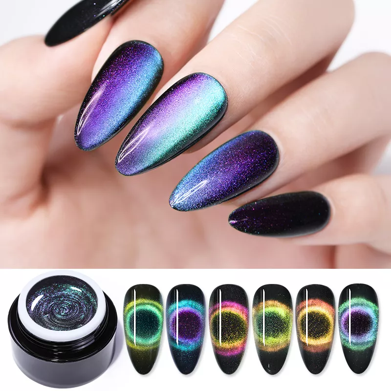 9D Cat Eye Series - линейка магнитных гель-лаков для создания эффектного маникюра с объемным эффектом кошачьего глаза. 9D эффект заключаются в образовании блика из контрастных цветов