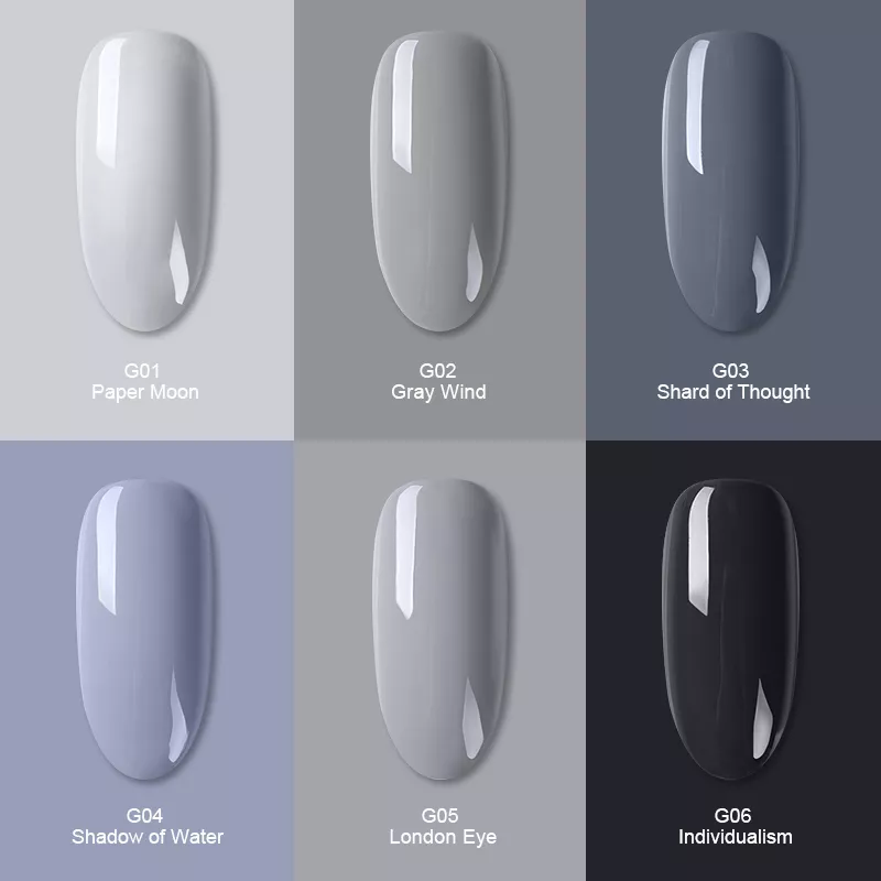 Grey series – это коллекция из 12 гель-лаков элегантных и загадочных оттенков серого цвета.