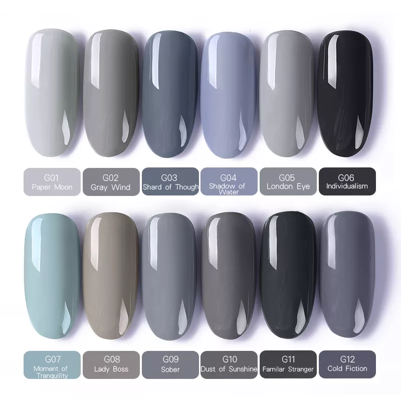 Grey series – это коллекция из 12 гель-лаков элегантных и загадочных оттенков серого цвета.