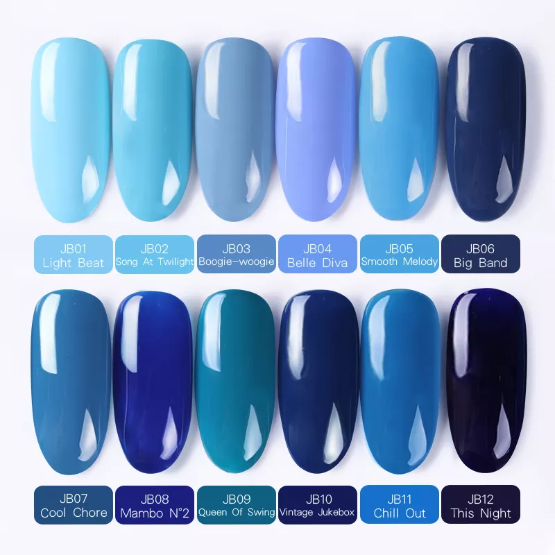 Jazz Blue series – это коллекция из 12 гель-лаков в сине-голубой гамме