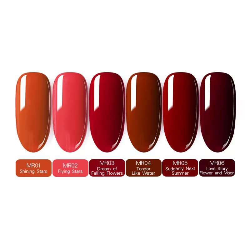 MakeUp Red Series – это коллекция из 6 гель-лаков необычных оттенков красного. Для изысканного маникюра с особым шармом