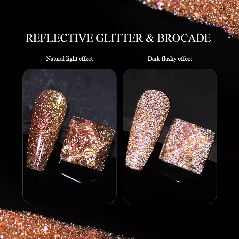 Reflective Glitter Series - линейка гель-лаков с необыкновенными завораживающими переливами голографических блесток-хлопьев и светоотражающим эффектом.