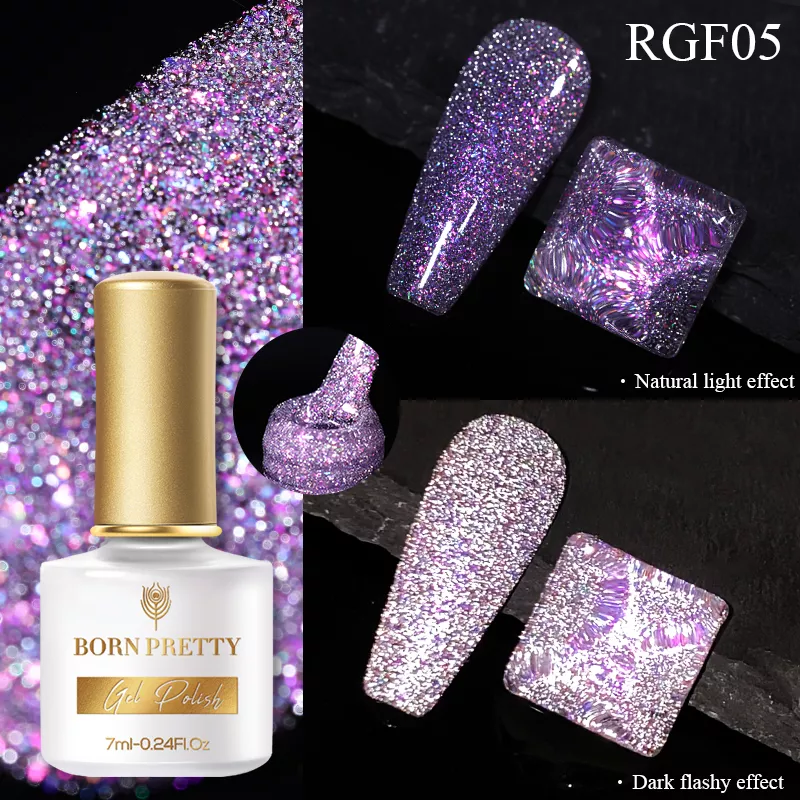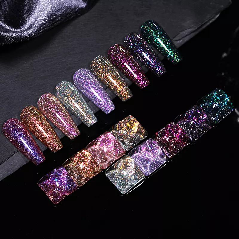 Reflective Glitter Series - линейка гель-лаков с необыкновенными завораживающими переливами голографических блесток-хлопьев и светоотражающим эффектом.