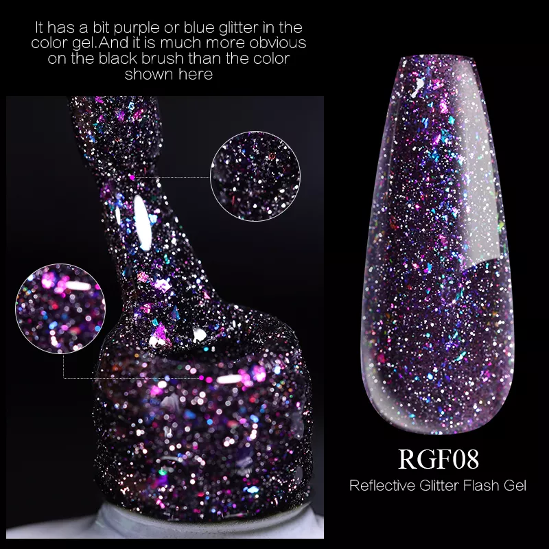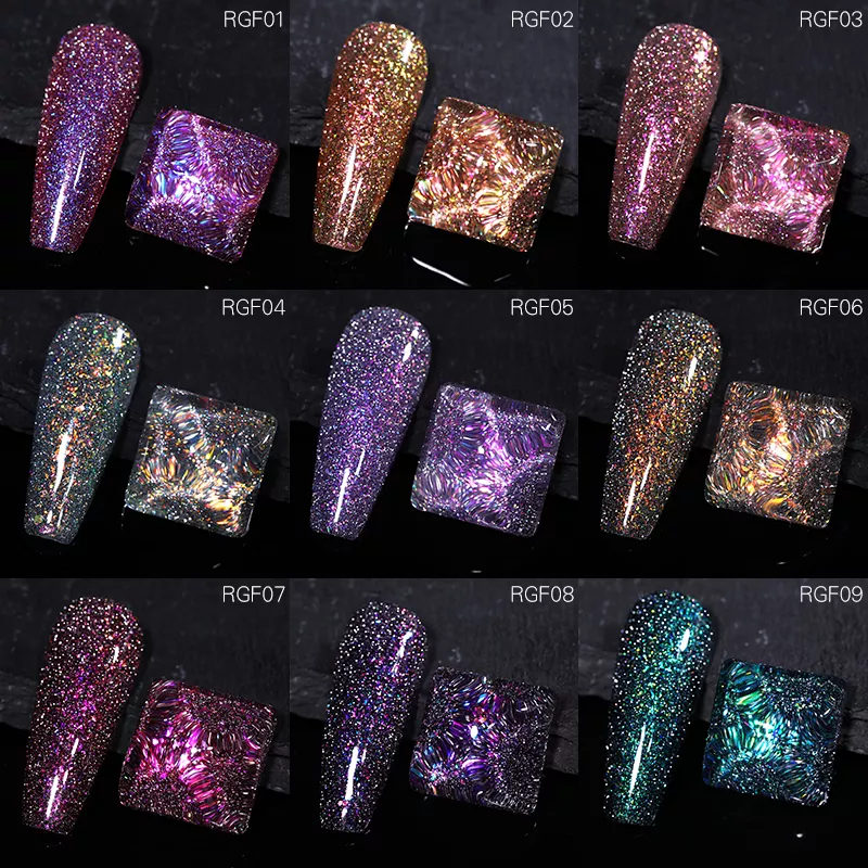 Reflective Glitter Series - линейка гель-лаков с необыкновенными завораживающими переливами голографических блесток-хлопьев и светоотражающим эффектом.