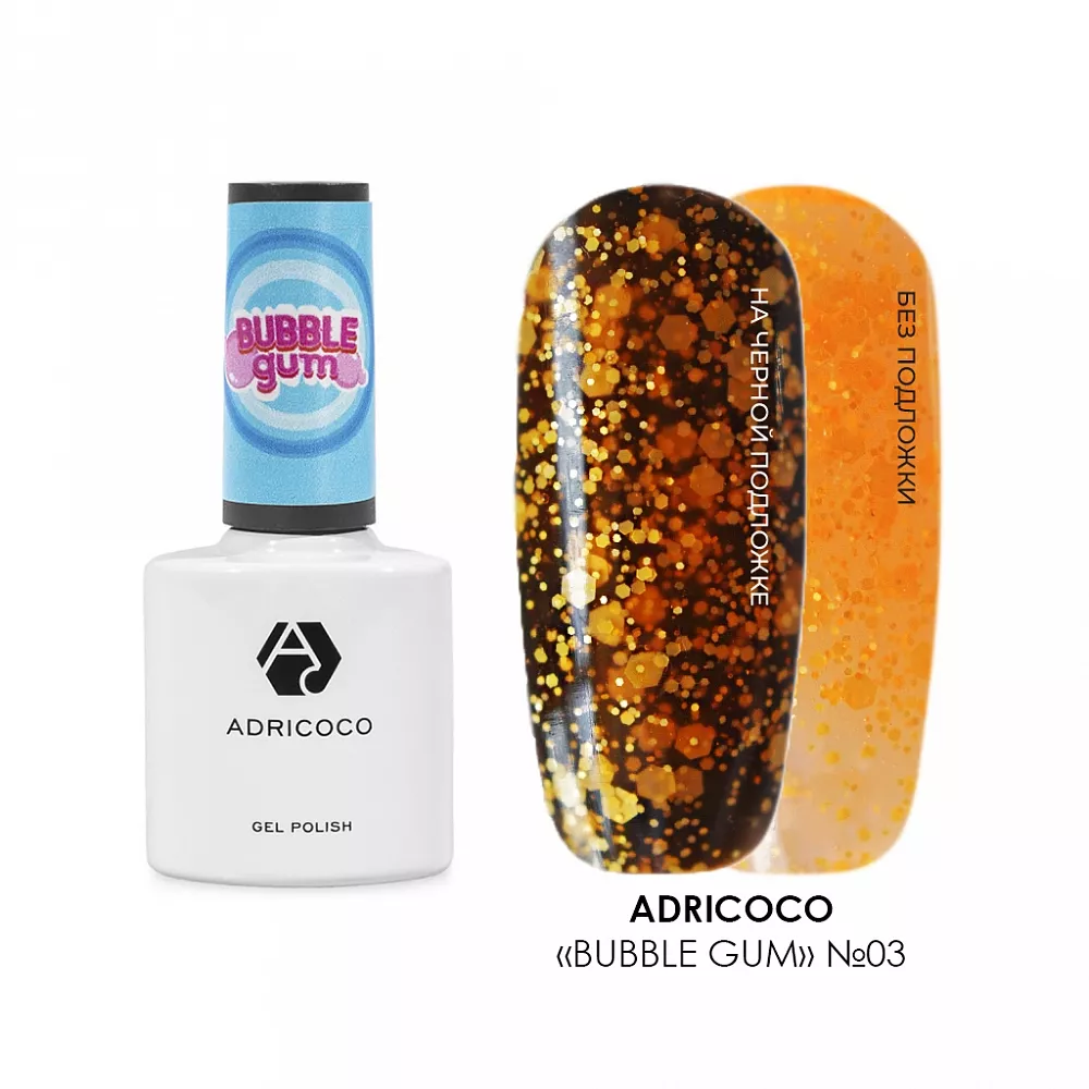 Коллекция состоит из 8 сочных цветов, которые смотрятся броско и стильно в качестве самостоятельного покрытия, а также могут стать нежным и красивым акцентом в нейл-арте. Каждый оттенок — это яркое сочетание цветного витражного фона и микса неоновой слюды. Гель-лак Bubble gum не требует нанесения базы, можно сразу наносить на ноготь; имеет среднюю консистенцию.