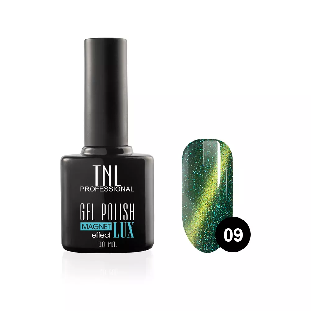Гель-лаки из коллекции Magnet effect так же называют «кошачий глаз». Такое наименование прижилось из-за схожести получаемого эффекта с камнем хризобериллом. В состав гель-лака входят металлические частички. При соприкосновении с магнитом, эти частички притягиваются и создают бегающий блик. Гель-лаки Magnet effect LUX отличается от классической «кошки» содержанием золотого шиммера.