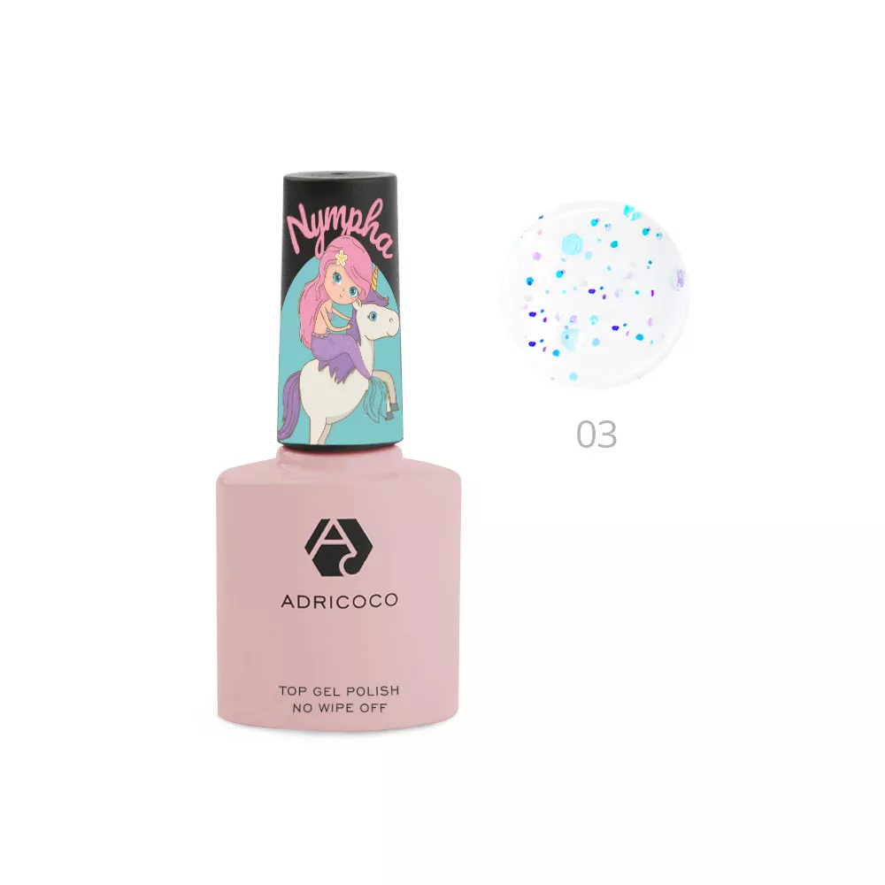 Топ имеет густую консистенцию и обладает эффектом самовыравнивания. Не имеет липкого слоя, а точки напоминают волшебство из сказок которые рассеиваются по ногтям, придавая им завораживающий блеск.
