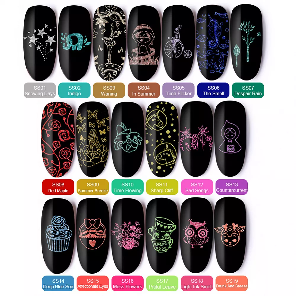 - Нанесите гель-пасту Born Pretty на пластины для стемпинга.