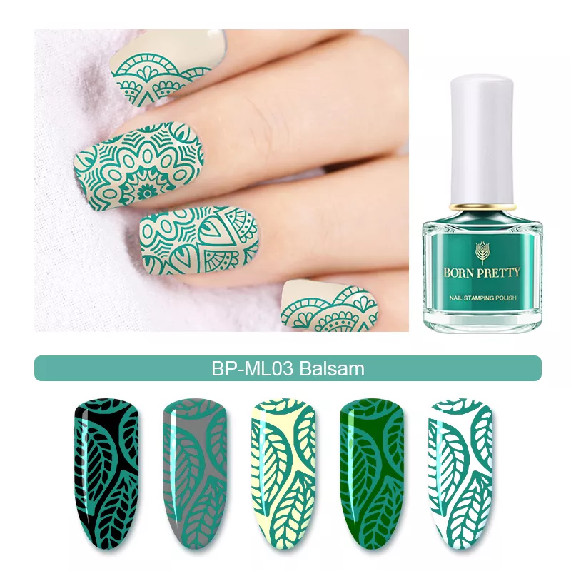 Лаки Born Pretty - качественные лаки для стемпинга, которые имеют высокую концентрацию пигмента в составе, благодаря чему смотрятся ярко и насыщенно. Обладают оптимальной консистенцией, легко ложатся на пластину или диск. Их преимущество - оптимальная скорость высыхания, не засыхают на штампе. Рисунок хорошо переносится на ноготок (даже самые мелкие детали остаются видны), имеет четкий контур и не смазывается после нанесения топового покрытия. Узоры особенно выигрышно смотрятся на ноготке, который покрыт контрастным цветом.