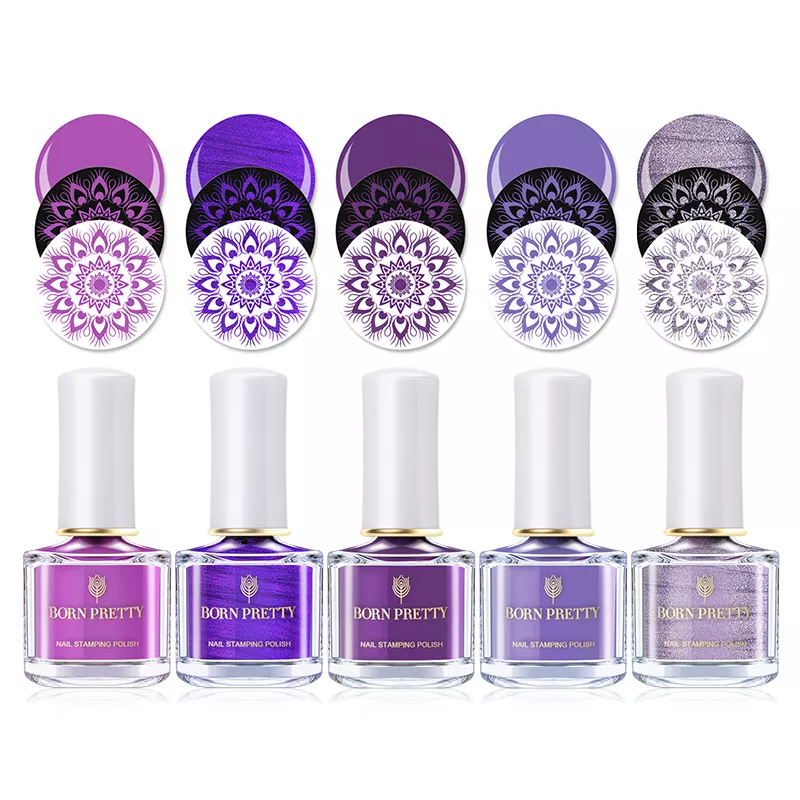 Лаки Born Pretty - качественные лаки для стемпинга, которые имеют высокую концентрацию пигмента в составе, благодаря чему смотрятся ярко и насыщенно. Обладают оптимальной консистенцией, легко ложатся на пластину или диск. Их преимущество - оптимальная скорость высыхания, не засыхают на штампе. Рисунок хорошо переносится на ноготок (даже самые мелкие детали остаются видны), имеет четкий контур и не смазывается после нанесения топового покрытия. Узоры особенно выигрышно смотрятся на ноготке, который покрыт контрастным цветом.