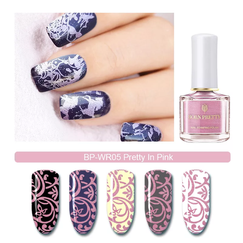 Лаки Born Pretty - качественные лаки для стемпинга, которые имеют высокую концентрацию пигмента в составе, благодаря чему смотрятся ярко и насыщенно. Обладают оптимальной консистенцией, легко ложатся на пластину или диск. Их преимущество - оптимальная скорость высыхания, не засыхают на штампе. Рисунок хорошо переносится на ноготок (даже самые мелкие детали остаются видны), имеет четкий контур и не смазывается после нанесения топового покрытия. Узоры особенно выигрышно смотрятся на ноготке, который покрыт контрастным цветом.