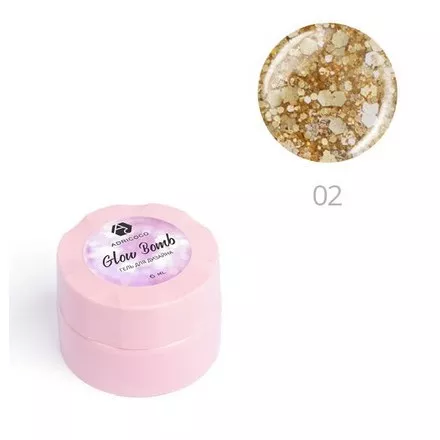- Нанести гель Glow Bomb тонким слоем и сушить в UV-лампе 2 минуты, в LED-лампе 60 секунд.