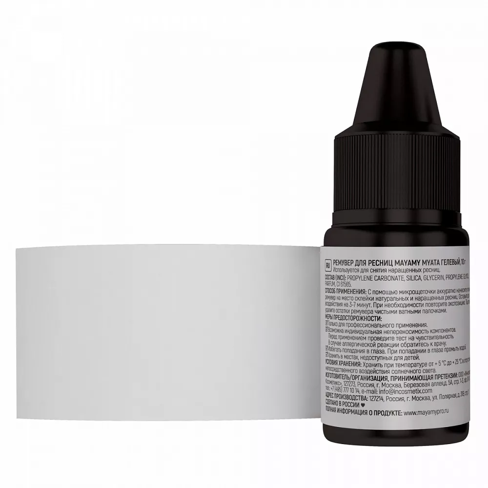 Ремувер подходит для мастера любого уровня, максимально комфортен для клиента. Пластичная гелевая текстура препарата позволяет легко нанести и распределить его на ресницах. Ремувер не растекается, бережно обволакивает ресницы и быстро и эффективно растворяет клей в месте сцепки натуральных и искусственных ресниц. Снятие наращивания занимает всего около 5 минут. Ремувер не оставляет следов на ресницах, легко поддается вычищению. Ремувер Myata отличается небольшим расходом: в 2 раза меньше, чем у обычного средства.