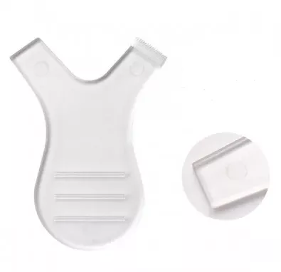 С одной стороны маленькая расческа, которой мастер равномерно распределяет ресницы по форме, а другая сторона - это мини-лопаточка, которой удобно закрепить, прижать ресницы и распределить клей.