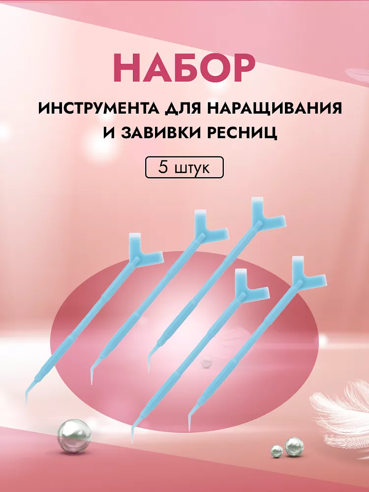 - Палочка для наращивания и завивки ресниц с аппликатором, голубая 5 штук