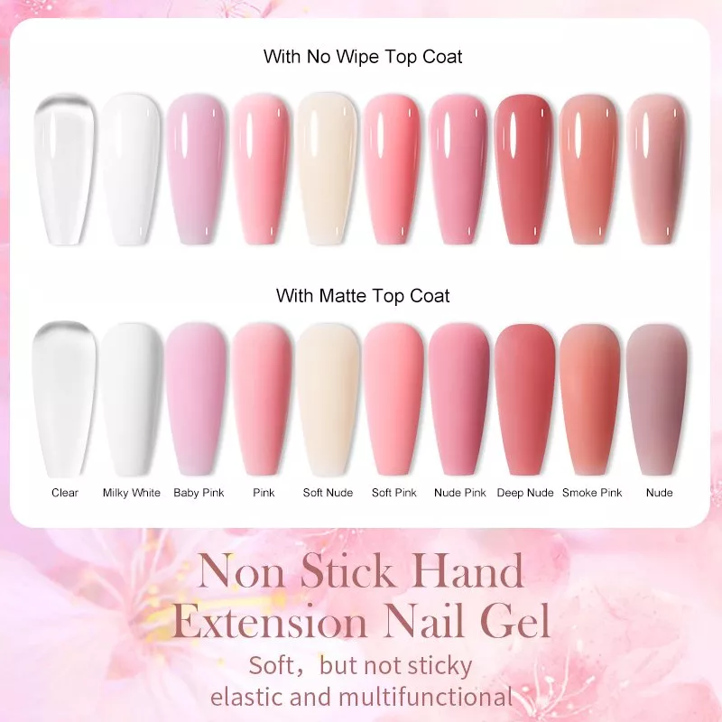 Так же материал можно смешивать с глиттером и другими материалами для дизайна, позволяя создавать эффектное наращивание и декор ногтей. Поверх геля можно использовать втирки для дизайна.