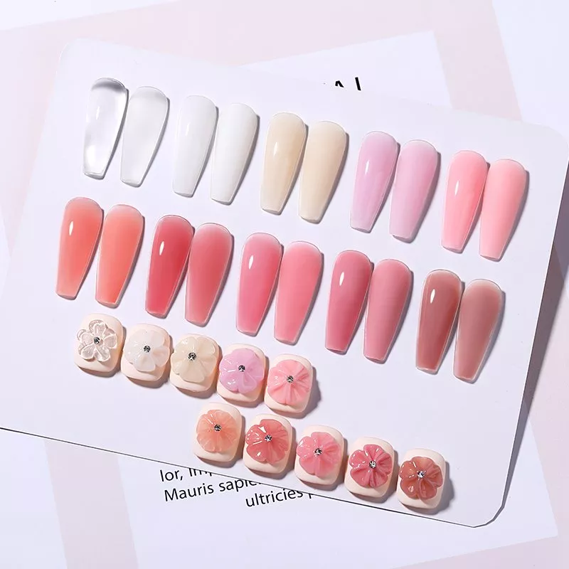 Так же материал можно смешивать с глиттером и другими материалами для дизайна, позволяя создавать эффектное наращивание и декор ногтей. Поверх геля можно использовать втирки для дизайна.