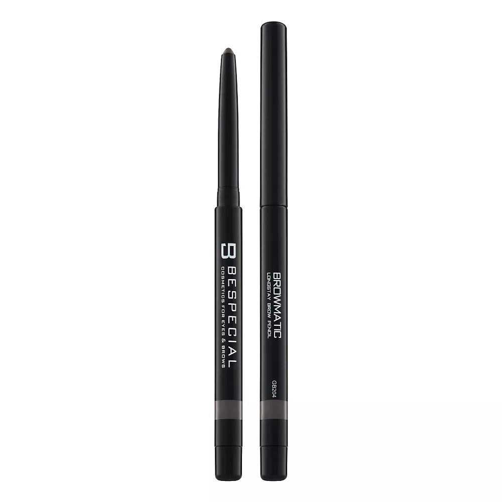 Стойкий автоматический карандаш Browmatic с телескопическим выдвигающимся стержнем и колпачком-точилкой на обратной стороне.
