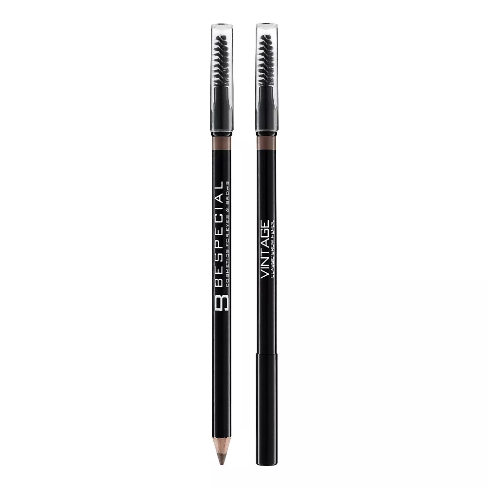 Классический карандаш для бровей VINTAGE в деревянном корпусе с щёточкой на другом конце.