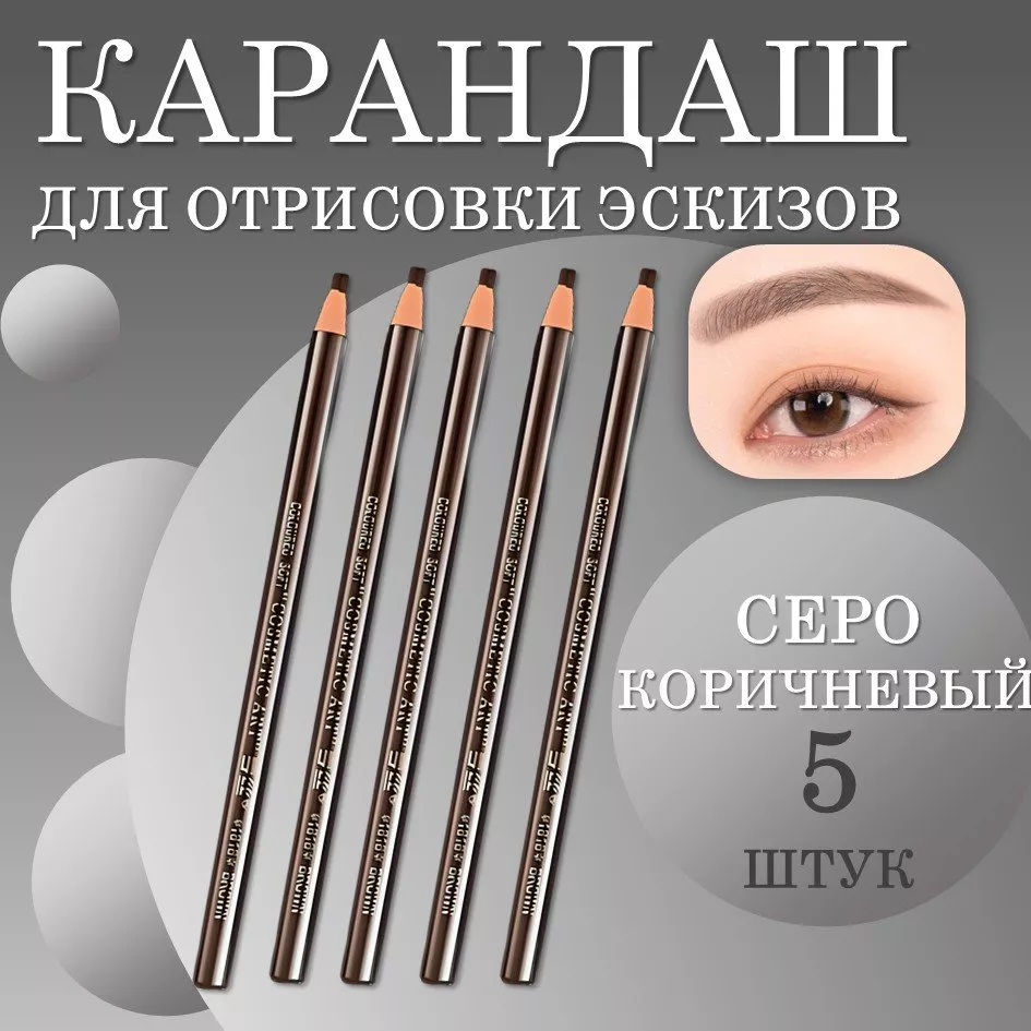 Водостойкие карандаши для отрисовки эскиза (серо-коричневый, набор 5 шт)