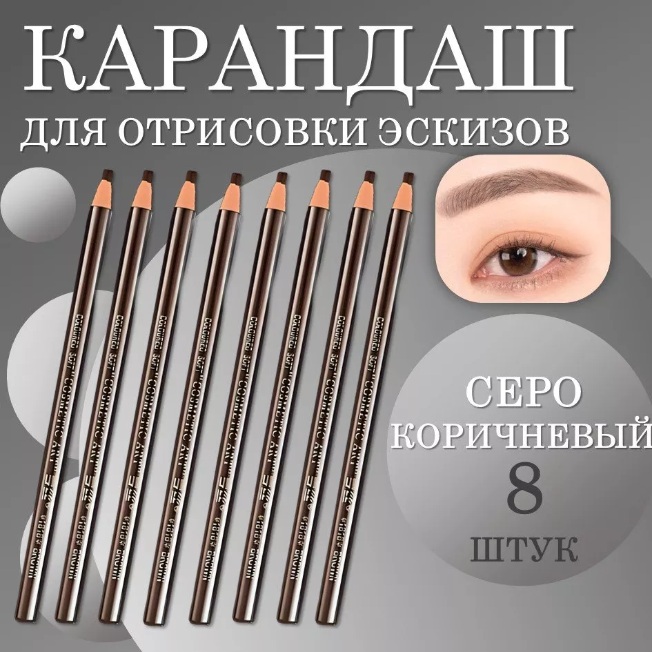 Карандаш для отрисовки эскиза водостойкий, серо-коричневый - 8 шт
