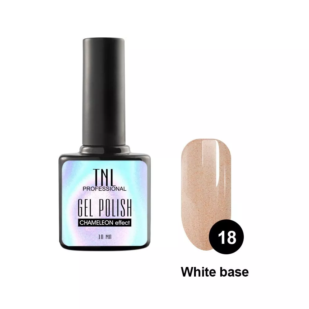 Гель-лаки линейки Chameleon effect можно сравнить с закрепителем. По консистенции он прозрачный, поэтому его можно использовать с любым гель-лаком. Для получения максимального эффекта необходимо наносить на черную подложку. В состав Chameleon effect входят микрочастицы, чувствительные к интенсивности освещения, а так же частички перламутра и крошечная алмазная пыль. Покрытие получается невероятно сияющим и блестящим. Цвет ногтевой пластины будет меняться в зависимости от угла зрения.