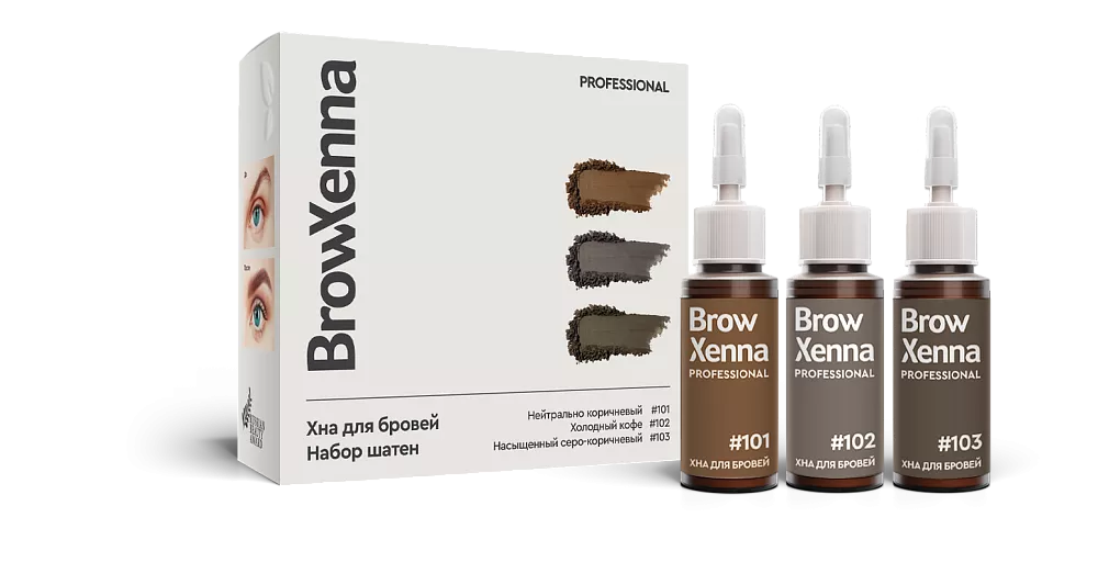 BROWXENNA® — первая хна, разработанная специально для бровей. Окрашивание сохраняется до 14 дней на коже и до 6 недель на волосках. Хна BROWXENNA® обладает уникальными свойствами. Благодаря натуральным красителям — растениям лавсония и индигофера, хна придает тон бровям. А входящие в состав амла, шакакай, гибискус и чайное дерево усиливают эффект окрашивания, дарят волоскам дополнительное питание и увлажнение.