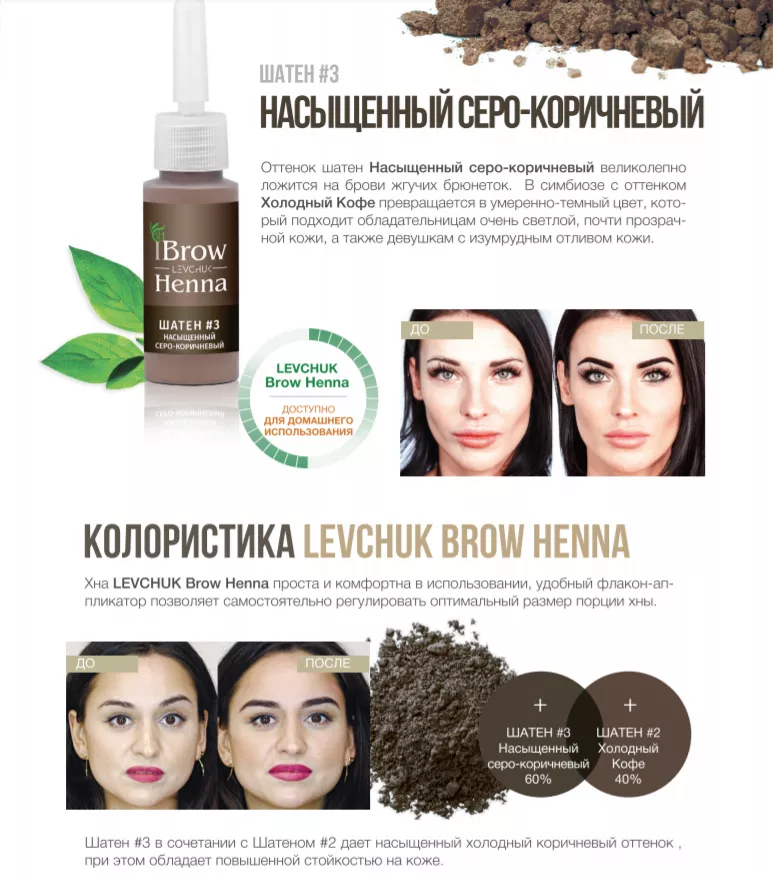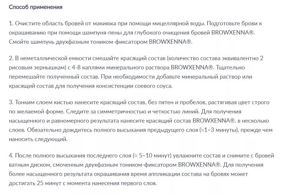 Хна для бровей BROWXENNA® — первая хна, разработанная специально для окрашивания бровей. Окрашивание сохраняется до 14 дней на коже и до 6 недель на волосках. Хна обладает лечебными свойствами, поэтому не только окрашивает, но и восстанавливает поврежденные брови и делает волоски гуще. Окрашивание хной BROWXENNA® способно перекрыть старый татуаж.