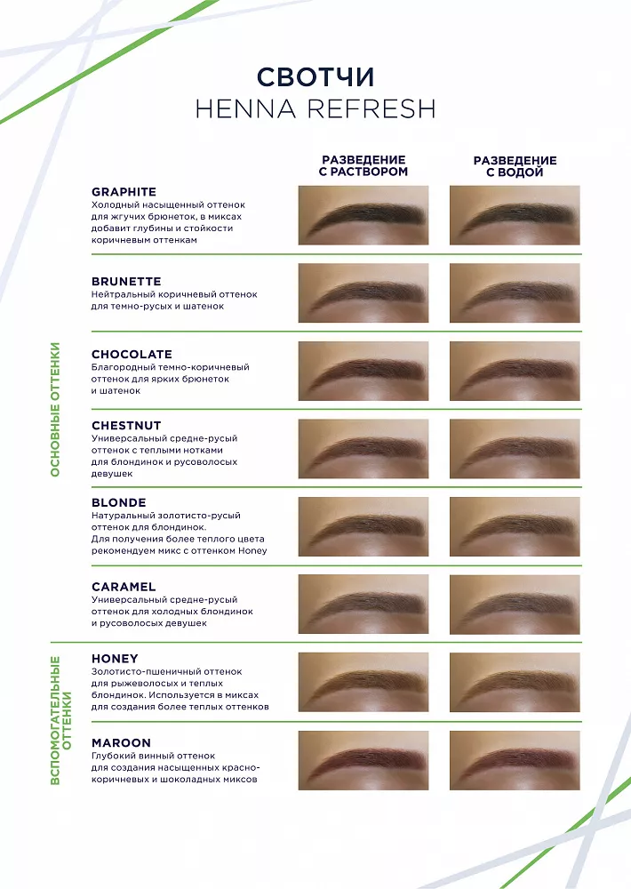 Для идеального биотатуажа бровей создан профессиональный набор хны Henna Refresh standard, в который входят 6 оттенков для каждого цветотипа лица. Набор разработан экспертами индустрии красоты для профессионалов броу-сервиса. Оцените его преимущества: