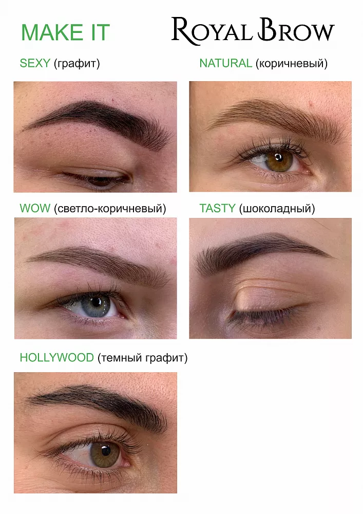 В палитру хны для бровей MAKE IT Royal Brow входит 5 универсальных оттенков: